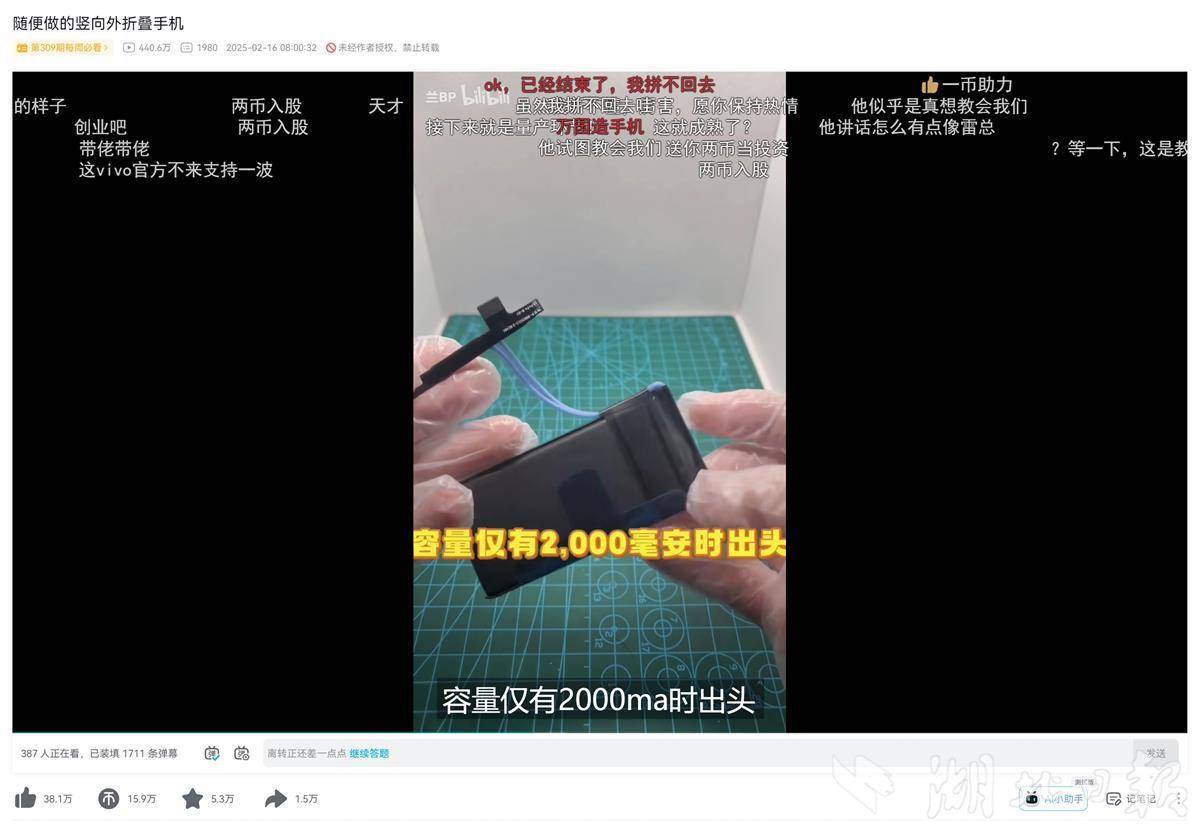 在这个国内闻名的视频弹幕网站上,他是UP主“兰BP”。一条《随意做的竖向外折叠手机》视频,在B站引来470多万人围观,热评7000余条,点赞超越40万。