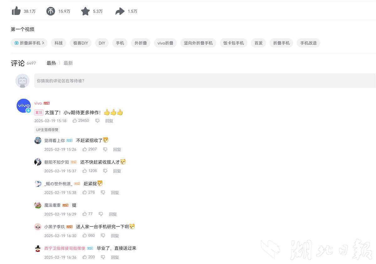 视频引爆网络后,许多网友都被兰博文的着手才干和研究精力感染,呼吁手机大厂赶忙吸纳。vivo官方账号更在谈论区留言:“太强了!等待更多神作。”